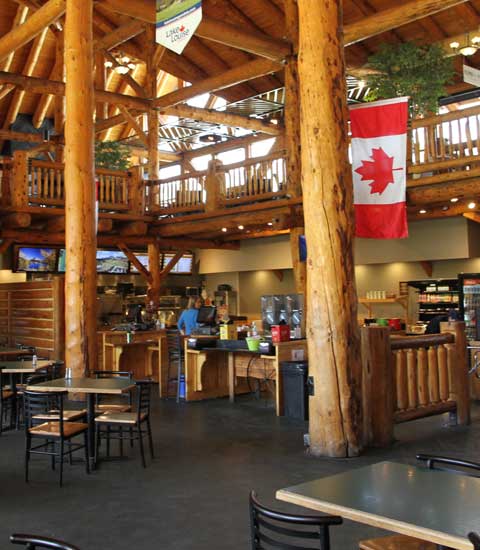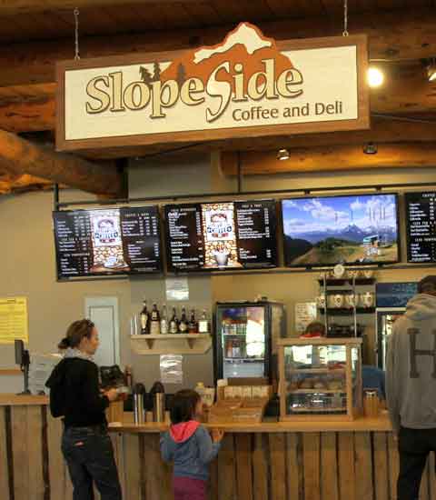 Grizzly spotted. We caught the free shuttle from the Fairmont in the early afternoon with the hope of seeing a grizzly. Unfortunately when we arrived there had not been any sightings for that day. There is a seating are inside where the ticket office is and provides nice views looking up the mountain. A small cafe provides hot drinks.