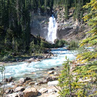 At the base of Bow Glacier Falls, amid the spray and roar, you can witness the birth of a river. The Bow River, part of western Canada's largest watershed, begins as meltwater tumbling down from the Wapta Icefield.